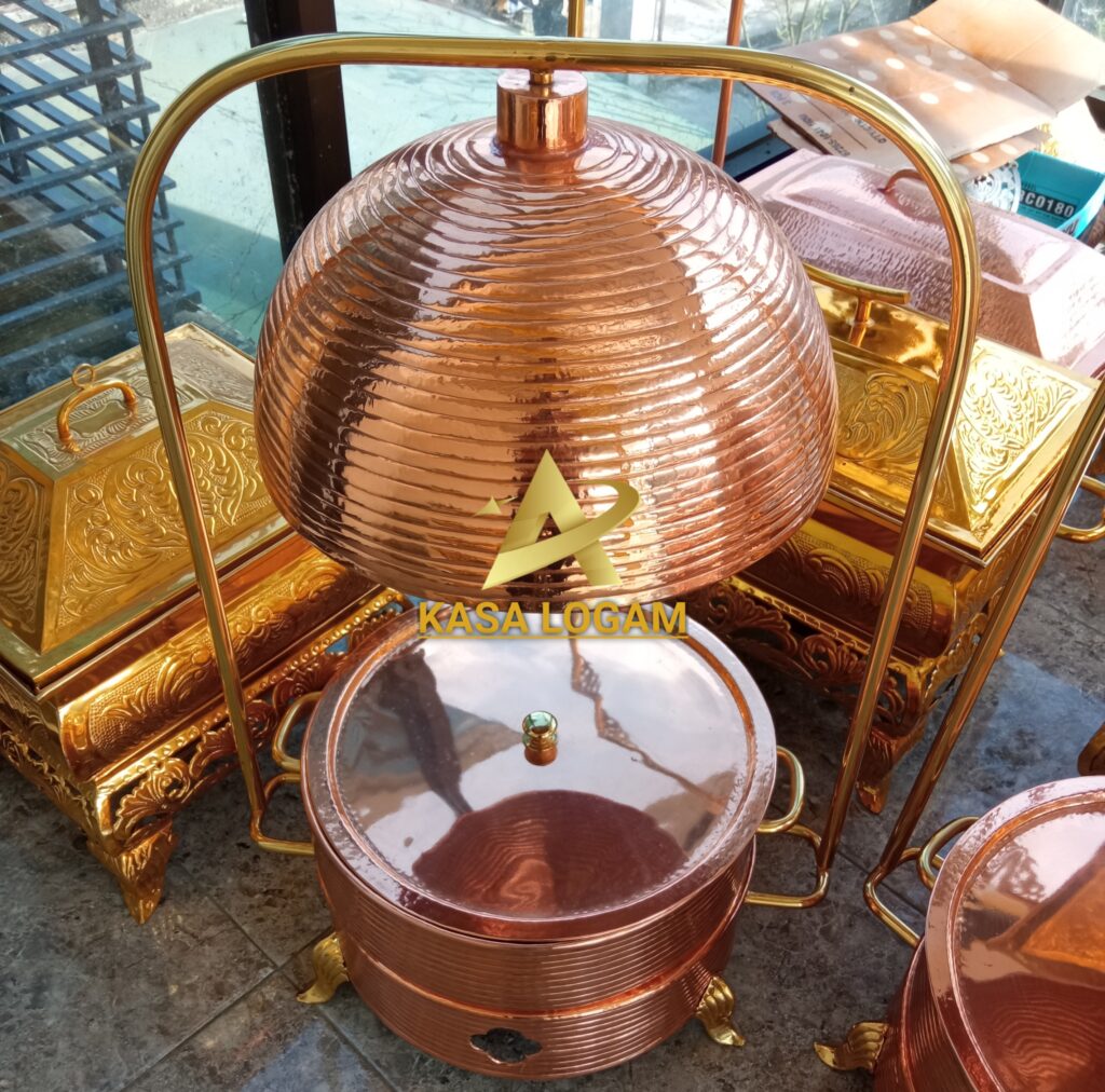 Chafingdish tembaga kuningan tidak hanya soal fungsi, tapi juga tampilan. Chafingdish berbahan logam menawarkan kesan mewah, klasik, dan kekinian secara bersamaan. Bahkan menjadi bagian dari tren kuliner modern yang digunakan dalam berbagai acara.